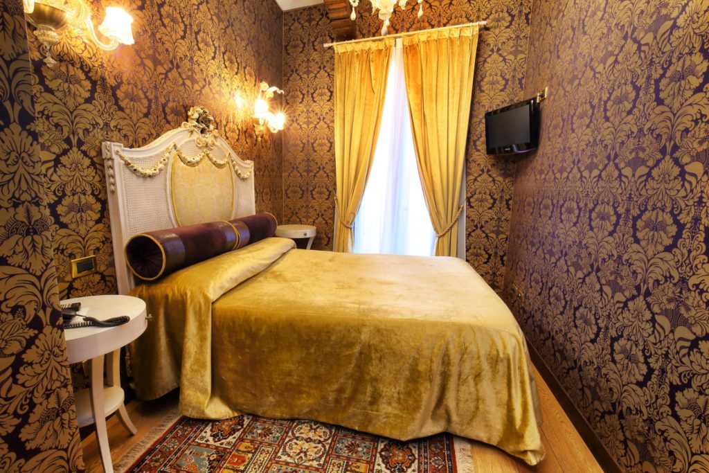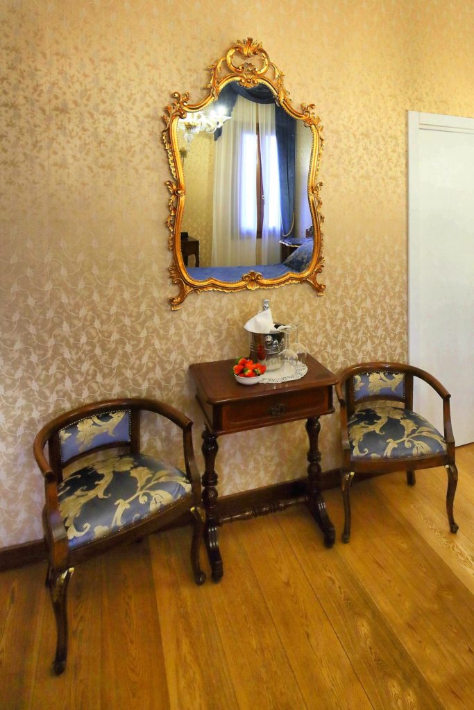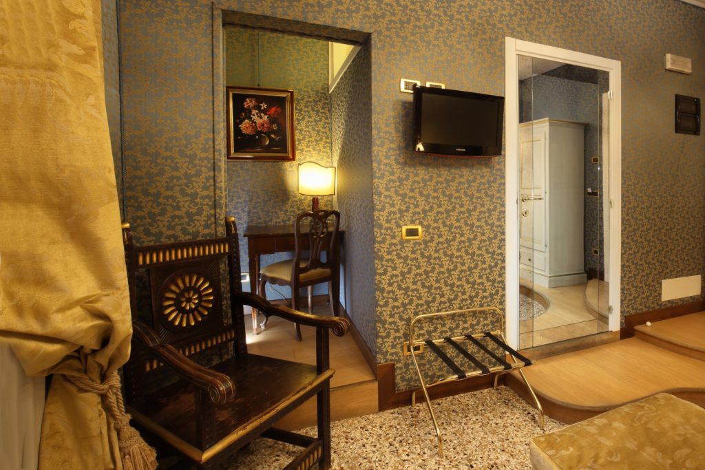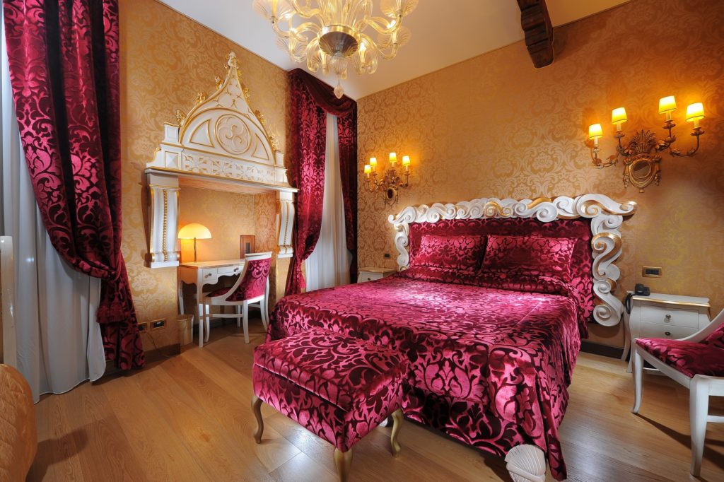 Decorated with taste and elegance, the deluxe rooms have blossoming gold damask on the walls, antique furniture dated back to the XVII century and luxurious Murano chandeliers.
