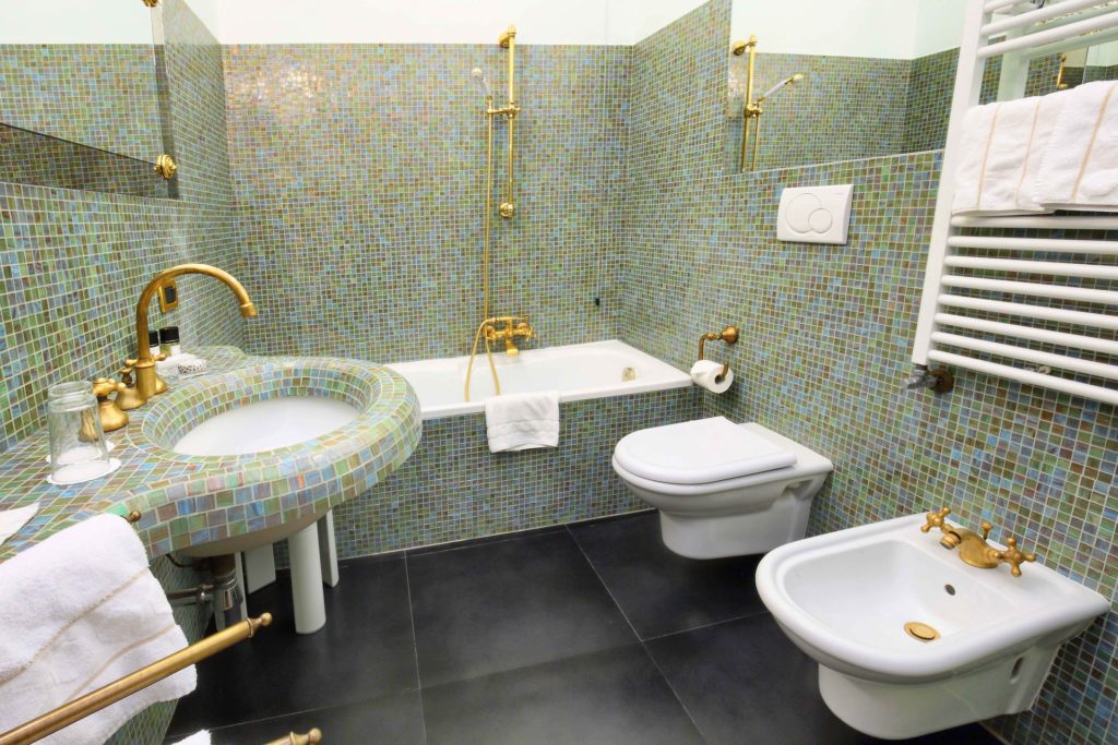 The bathroom, with either shower or bath, have an elegant color and they all are equipped with towels, hair-dryer and courtesy-kit.